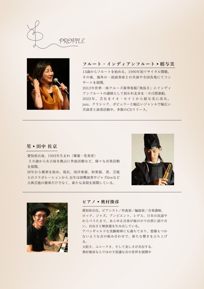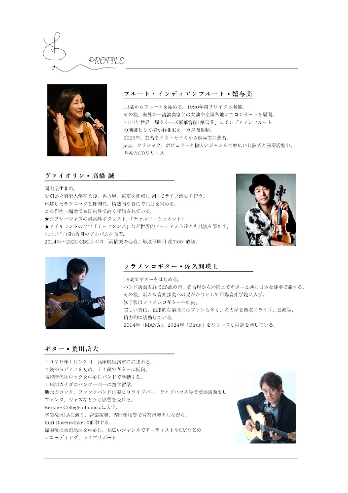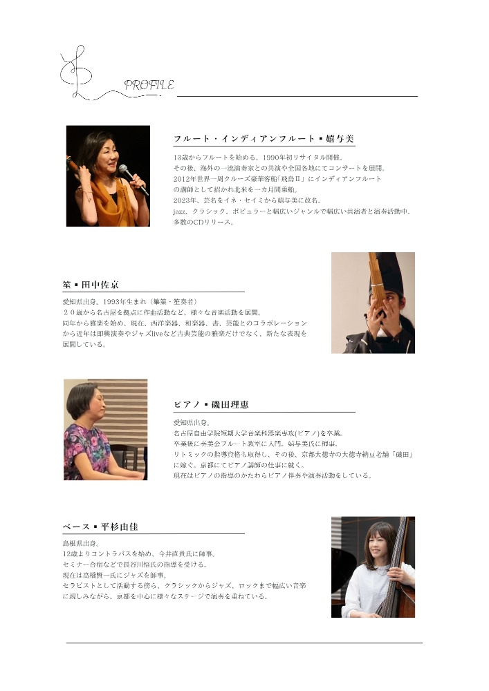 Mark Akixa(NAfl)、嬉与美(NAfl)、太田光宏(Gt)、セニョール・マンボ(Perc)