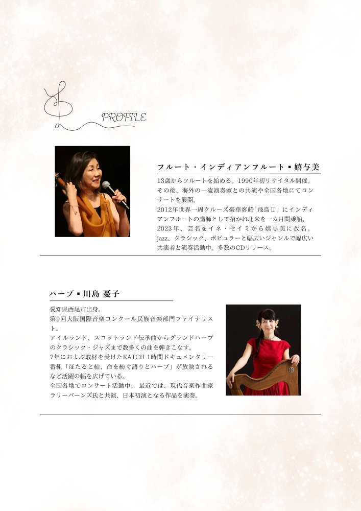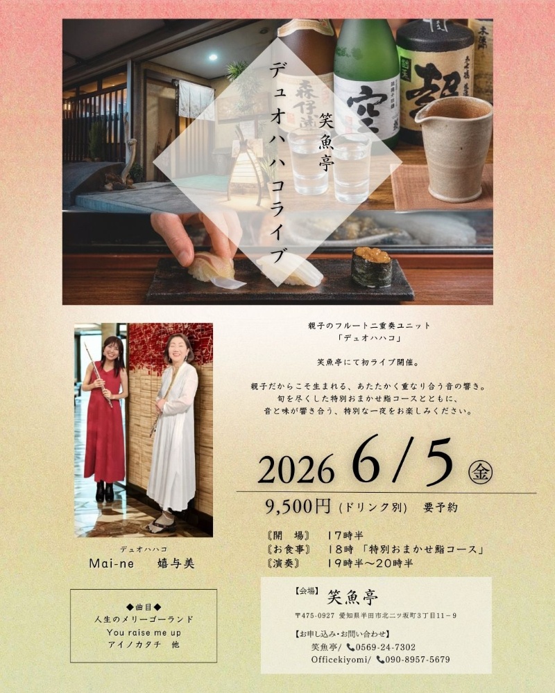 頬っぺた落ちそうな美味しいランチをいただいた後に癒しの音色お楽しみください。